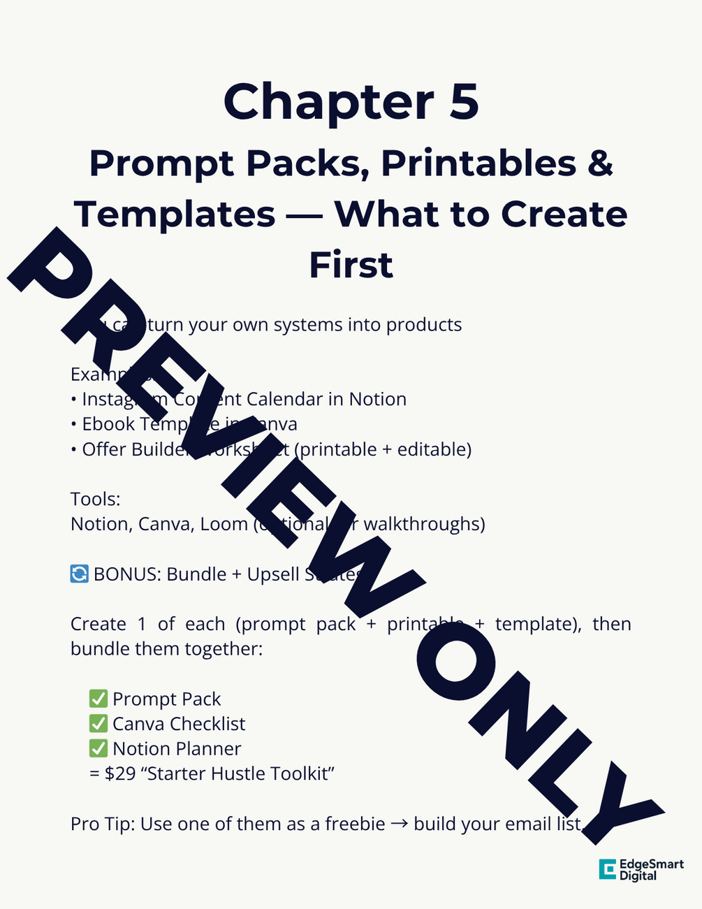 Launch your first AI-powered income stream with zero experience. This beginner-friendly toolkit gives you everything you need to plan, create, price, and sell digital products — no face, no tech headaches.